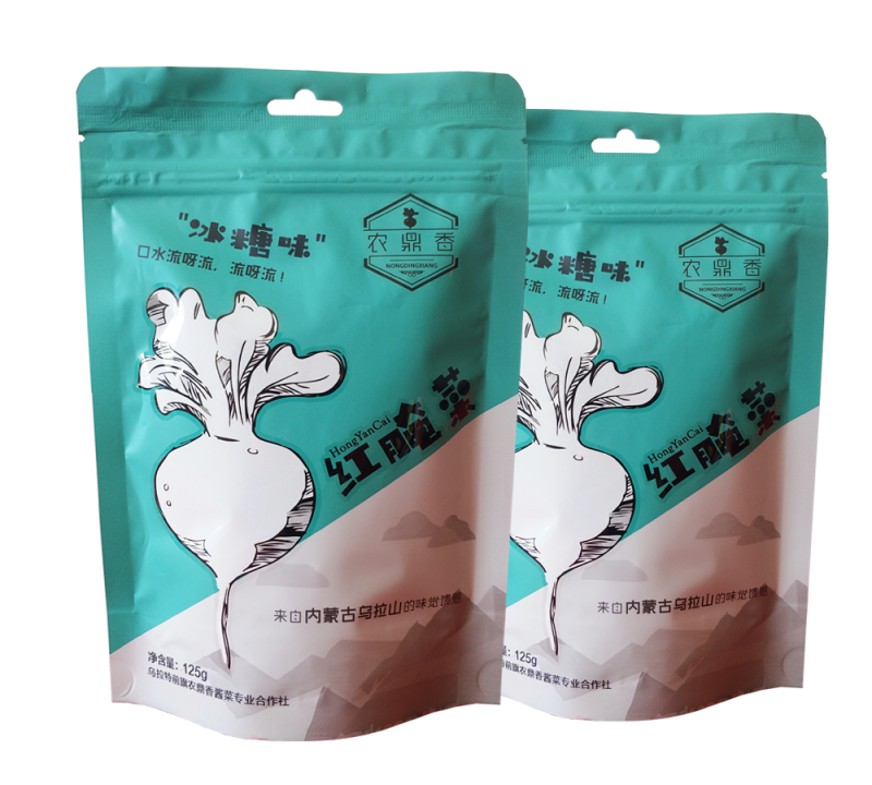 “农鼎香”红腌菜选用河套特有的红蔓菁为主要原料采用传统的工艺研制,配以盐、糖、醋、酱油、辣椒、味精、为辅料精心研制而成。农鼎香红腌菜在制作中保持原料绿色天然,制作纯手工,保留独特的河套风味,本产品不添加任何防腐剂。